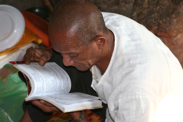 Reading scriptures at Angkor Wat, Cambodia
